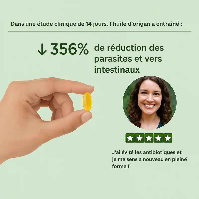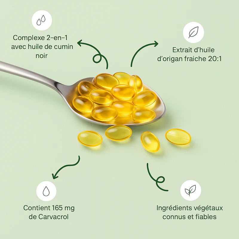 Absolument. Aucun produit chimique, aucun additif douteux. Juste des extraits purs d’origan et de cumin noir, soigneusement dosés. 100% végétal, 100% clean.